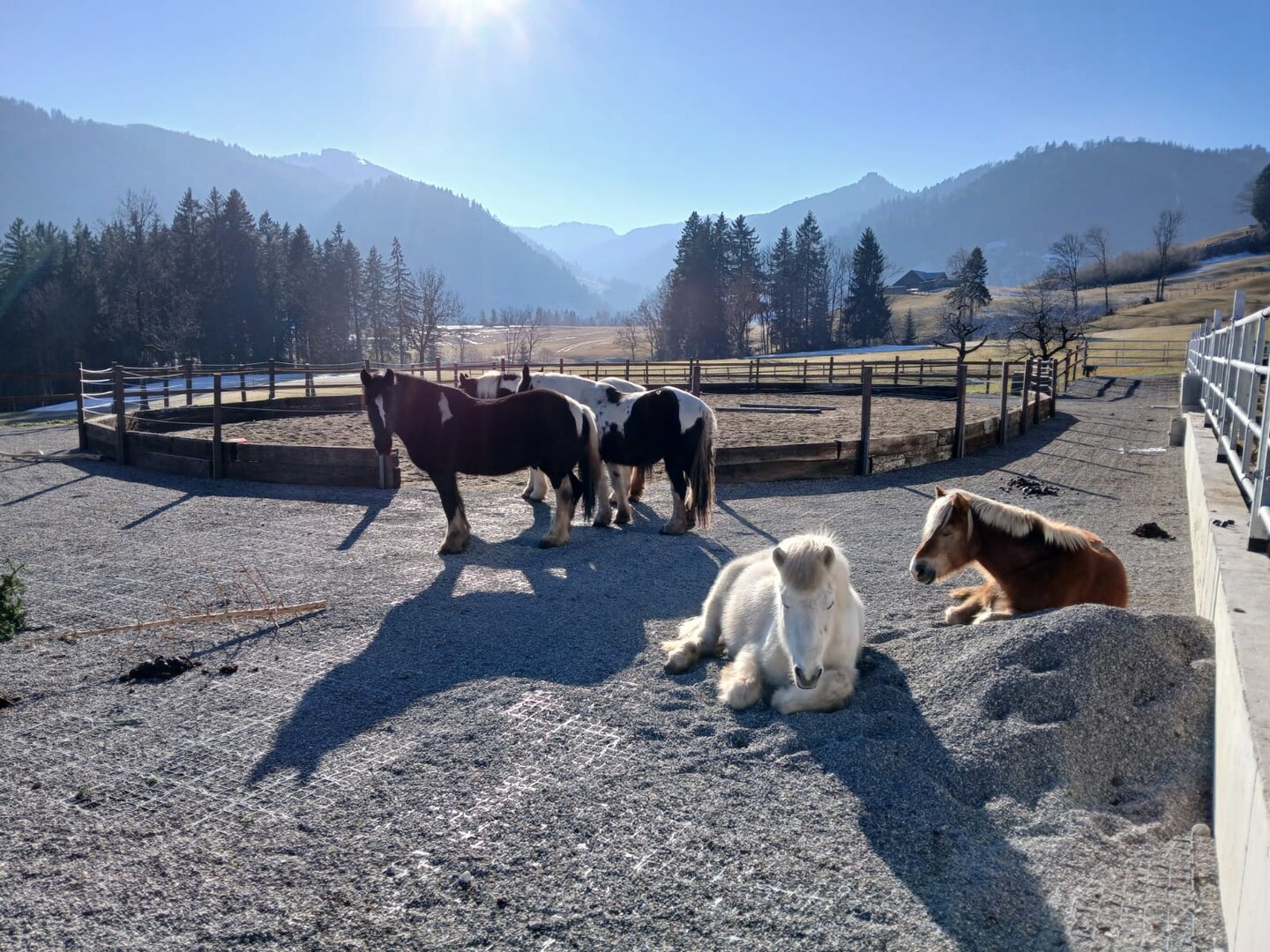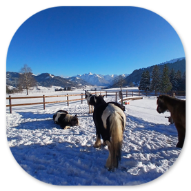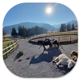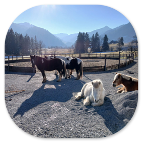 - kleine, gemischte Gruppen - Offenstallhaltung (max. 10 Pferde)