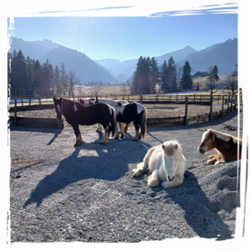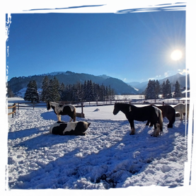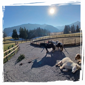 - kleine, gemischte Gruppen - Offenstallhaltung (max. 10 Pferde)