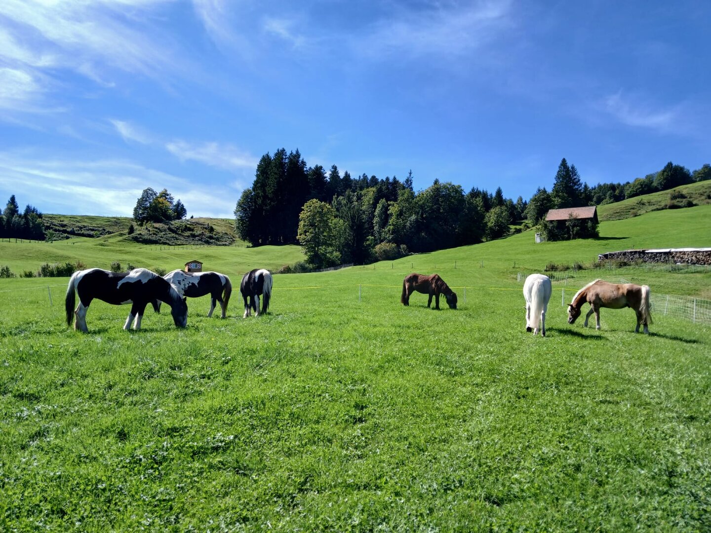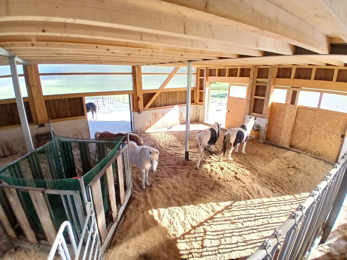 Die Pferde leben bei uns im neuen grosszügigen Offenstall in der Gruppe, geniessen in der Vegetationszeit täglicher Weidegang und im Winter zusätzlichen Auslauf im Rundtrail um den Reitplatz. Unsere 6er Gruppe ist sehr harmonisch und könnte noch 3-4 Pferde aufnehmen.