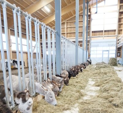 Unsere Eselherde hat sich gut im neuen grossen Stall eingelebt.